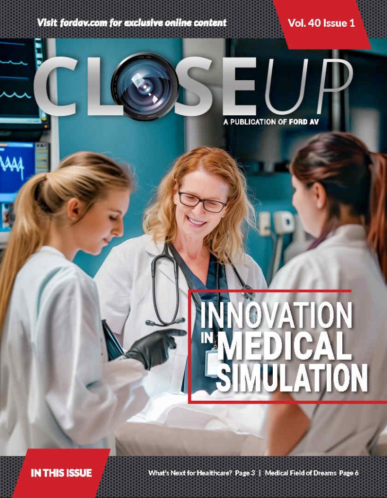 Spring 2024 – This issue of Close-Up explores how advanced AV technology is transforming healthcare education through medical simulation training. By combining high-fidelity mannequins, video capture systems, and simulation labs, healthcare professionals can practice complex procedures in realistic environments before working with real patients. The result is safer training, improved decision-making, and better patient outcomes.