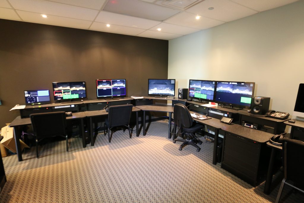 - 3MOS cameras, manned cameras, pan/tilt/zoom cameras, waveform/vectorscope & Ross Carbonite switcher to help create professional grade video productions